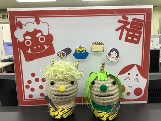 2月に向けて、受付の編みぐるみも節分の衣装にチェンジしてみました。