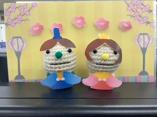 3月が近づいてきたので、受付の編みぐるみちゃんもひなまつり仕様にチェンジしてみました☆